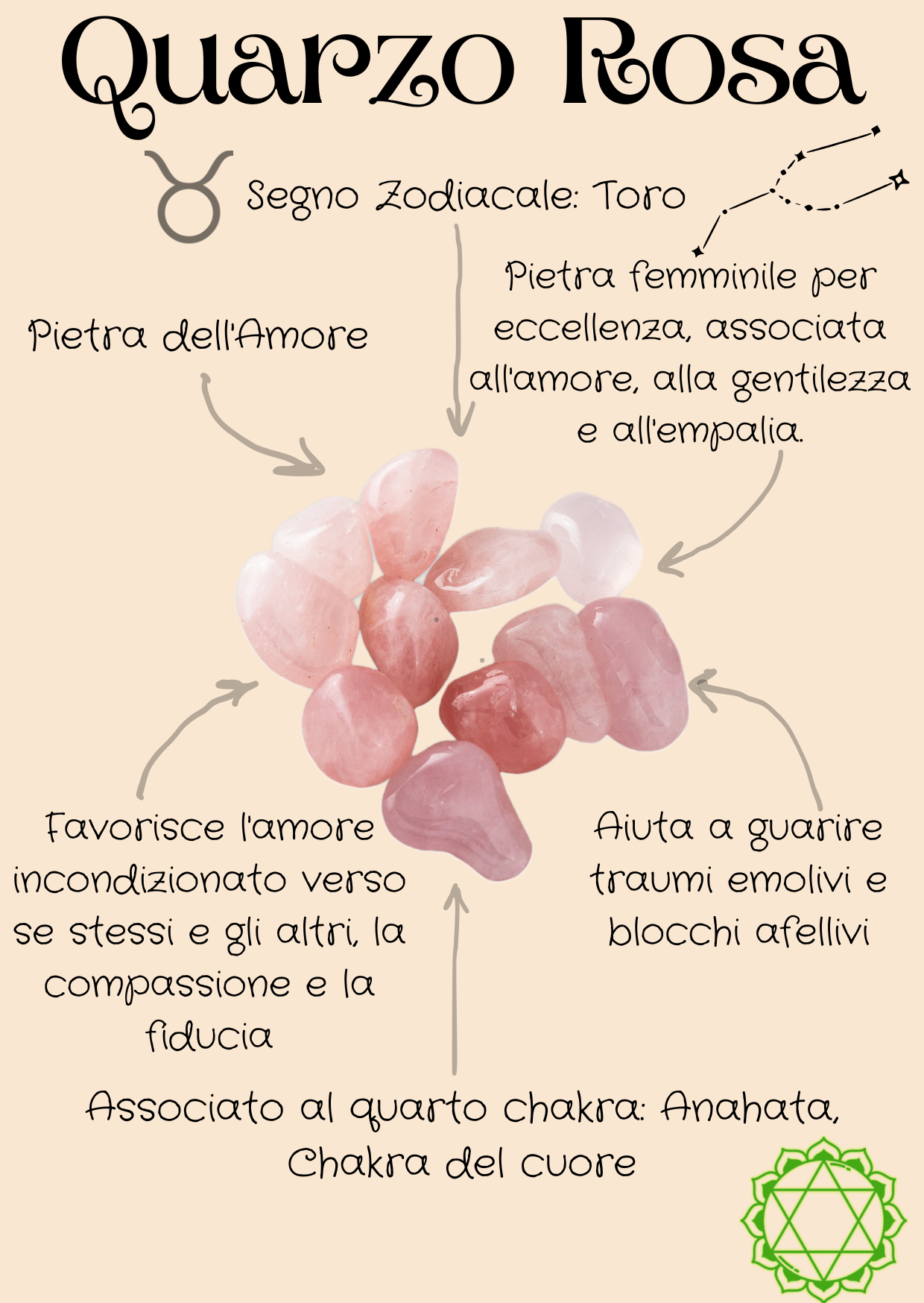 Il sangue di Afrodite si mescolò con le lacrime che versò per Adone e con il sangue di lui. Da questa unione sacra di amore e dolore nacque il quarzo rosa, una pietra che simboleggia l'amore eterno, la compassione e il sacrificio.