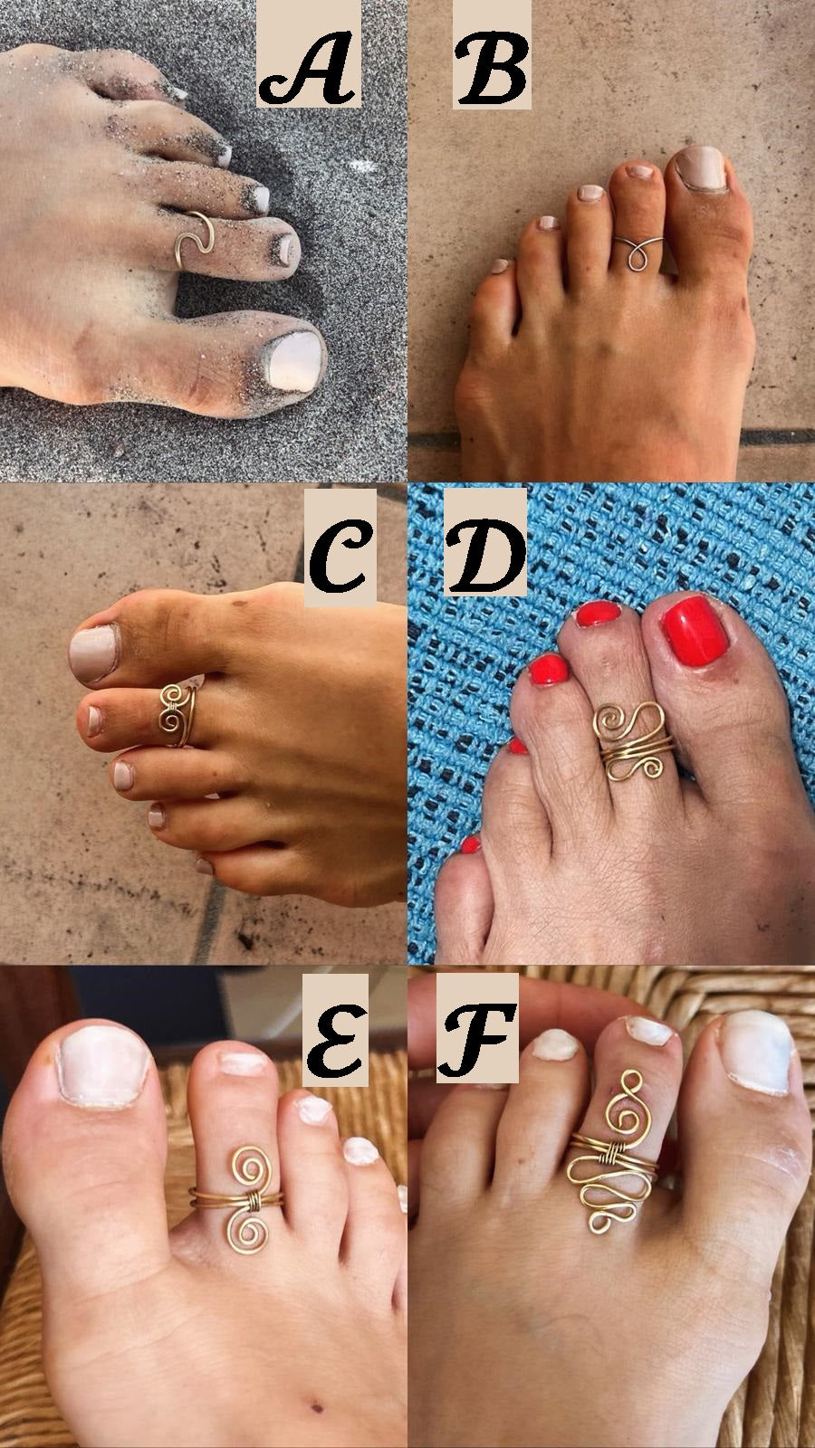 Anellini Regolabili per i piedi. Da indossare al mare, sulla sabbia, in acqua o per aggiungere un tocco di charme alle vostre scarpe aperte. Perchè l'eleganza spesso sta nei piccoli dettagli, quelli delicati e discreti, capaci di sorprendere.